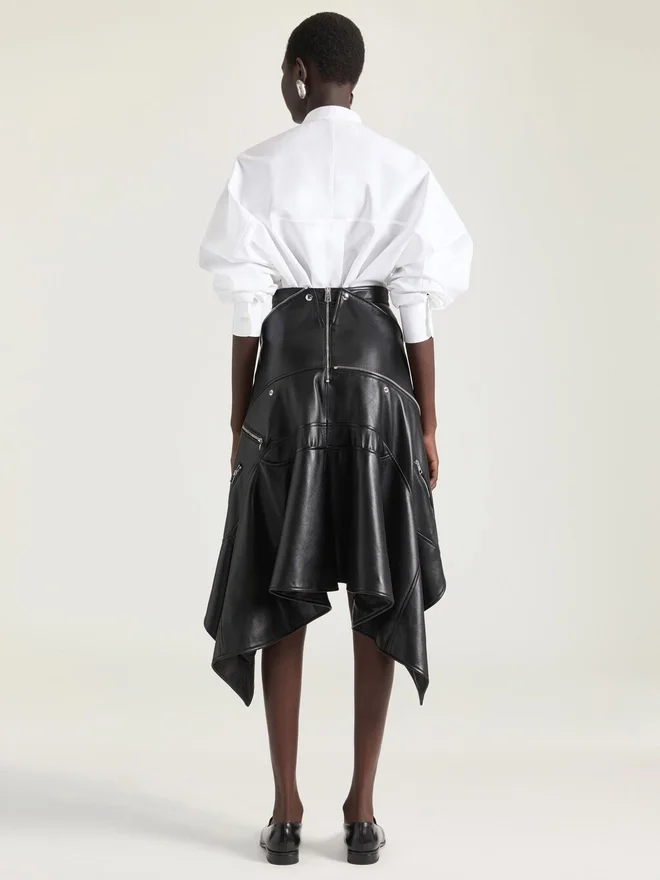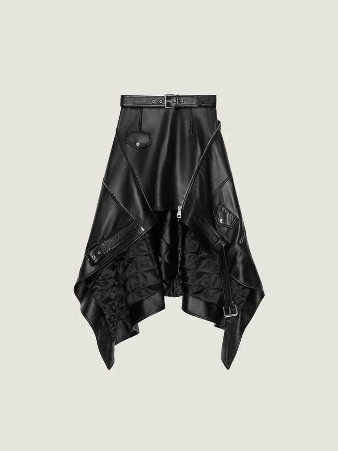 Kjol i Plonge-lammskinn.Justerbart bälte.Dragkedja på baksidan med Givenchy-logotyp.Metallblixtlås på snedkant.Två fickor med lock på framsidan.Asymmetrisk längd: längre bak.Modellen är 177 cm lång och bär storlek 36. Skötsel• Får inte tvättas• Får inte strykas• Får inte torktumlas• Får inte blekas• Får inte kemtvättasUrsprungslandItalienProduktkodBw411a604J-001