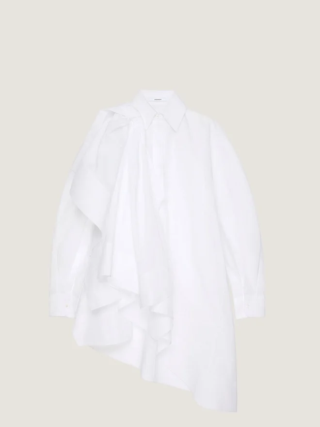 Asymmetrisk skjortklänning i bomull med rosettdetalj