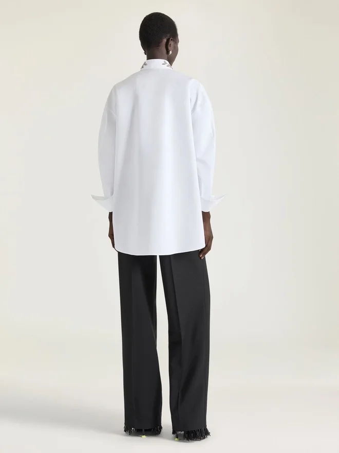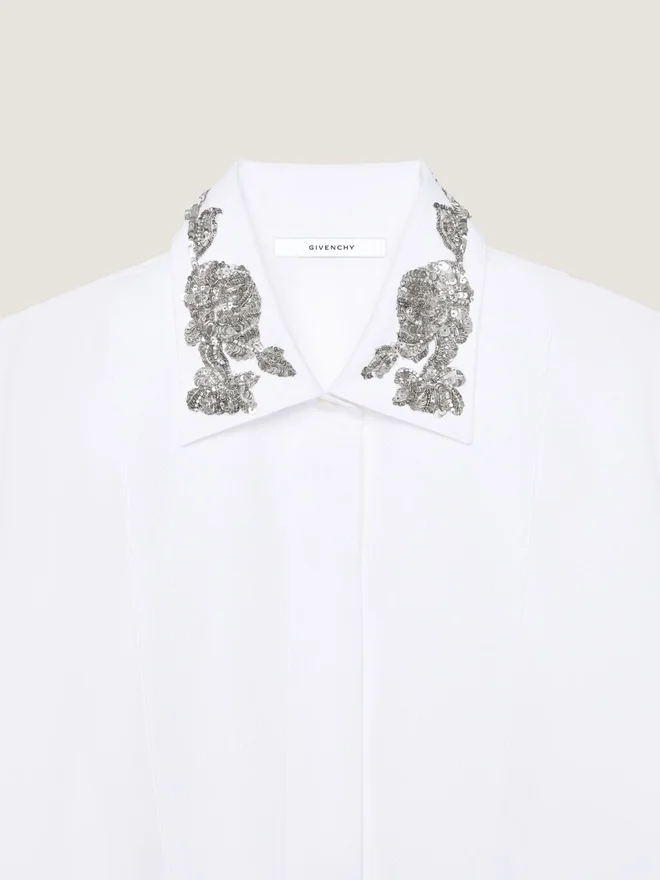 Kristaller, pärlor, paljetter och blomsterbroderier för in ateljéns hantverk i damkollektionen – från eleganta festkläder till vardagsplagg.Långärmad skjorta i bomullspoplin.Klassisk krage med blommig paljettbroderi.Piqua-plastron fram.Dold knäppning.Knäppta manschetter.• Asymmetrisk längd: kortare framtill. • Modellen är 177 cm lång och bär storlek 36. D FärgD VitD MaterialD 100 % bomullD SkötselD Tvätta inteD Stryk vid högsta strykskivstemperatur (110 °C)D Tvätta inteD Stryk vid högsta strykskivstemperatur (110 °C)D Tvätta inteD Stryk vid högsta strykskivstemperatur (110 °C)D Tvätta inteD Stryk vid högsta strykskivstemperatur (110 °C)D Tvätta inteD Stryk vid högsta strykskivstemperatur (110 °C)D Tvätta inteD Stryk vid högsta strykskivstemperatur (110 °C)D Tvätta inteD Stryk vid högsta strykskivstSkötselrådTvätta inteStryk vid högsta strykskivstemperatur (110 °C) Utan ånga • Får inte torktumlas • Får inte blekas • Kemtvätt med kolväten tillverkade av högkvalitativa material. För att bevara glansen hos din Givenchy-produkt rekommenderar vi att du förvarar den i en dammpåse av bomull på en torr och sval plats. Kemtvätt rekommenderas för de flesta av våra produkter. Se till att följa skötselanvisningarna på etiketten på din produkt. Besök gärna vår särskilda sida eller kontakta våra Givenchy-team direkt om du vill ha mer information.Tvätta inteStryk vid högsta strykskivstemperatur (110 °C) utan ångaTorktrumla inteBlek inteKemtvätt med kolväten