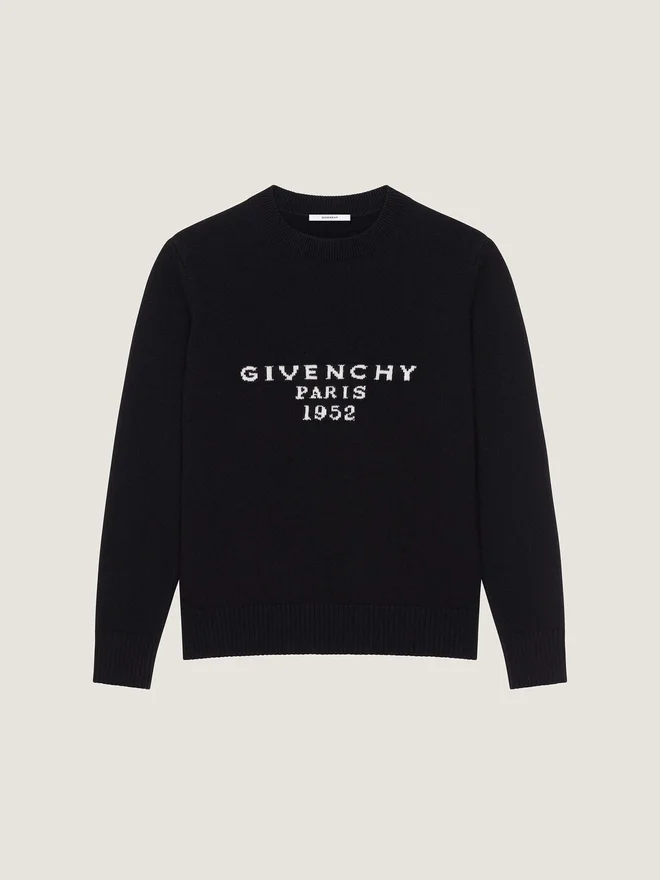 Givenchy-stämpeln är ett autentiskt motiv hämtat från inbjudningarna till haute couture-visningarna på det historiska Hotel Caraman, 3 Avenue George V, Givenchys hem i Paris.Långärmad tröja i ull och kashmir.Rund hals. Givenchy Paris 1952-jacquard på framsidan. Ribbad krage, nederkant och ärmslut.Modellen är 177 cm lång och bär storlek XS.D FärgD SvartD MaterialD 70 % ull, 30 % kashmir.D Skötselråd• Får inte tvättas• Stryk vid högsta strykskivstemperatur (110 °C) utan ånga• Får inte torktumlas• Får inte blekasProfessionell kemtvätt med tetrakloretylen och kolväten, Mycket försiktig behandlingUrsprungslandItalienProduktkodBw90Vd4Zsn-001 Skötselinformation Våra ateljéer designar unika plagg med mod och kreativitet, tillverkade av högkvalitativa material.För att bevara glansen hos din Givenchy-produkt rekommenderar vi att du förvarar den i en dammpåse av bomull på en torr och sval plats. Kemtvätt rekommenderas för de flesta av våra produkter. Se till att följa skötselanvisningarna på etiketten på din produkt. Besök gärna vår särskilda sida eller kontakta våra Givenchy-team direkt om du vill ha mer information.Tvätta inteStryk vid högsta strykskivstemperatur (110 °C) utan ångaTorktrumla inteBlek inteProfessionell kemtvätt med tetrakloretylen och kolväten, mycket skonsam behandling