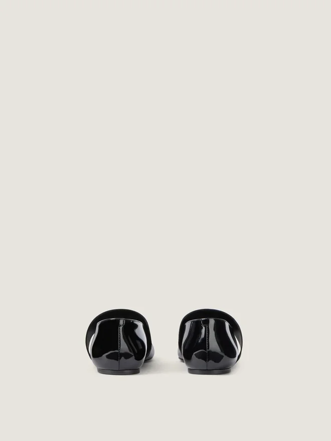 Ballerinaskor med skuren kvadratisk tå i lackläder