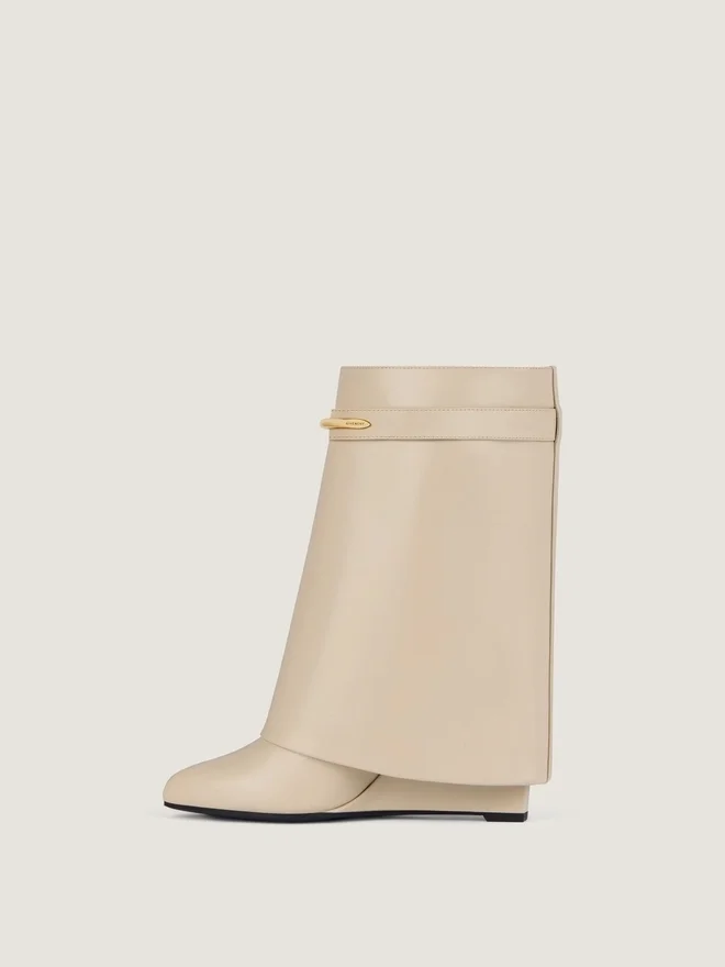Ankelstövlar i kalvskinn.Shark Pinch-linje.Metallklämma med Givenchy-gravyr.Metall detaljer med guldfinish.• Spetsig tå. • Täckta kilklackar. • Omfattande överdel för stöd och smidig rörelse. • Klackhöjd: 3,5 tum.UrsprungslandItalienProduktkodBe605Le1J7-250 Skötselråd Varje par skor som tillverkas i våra verkstäder är unikt och tillverkat av exceptionella material. Dessa material, som noggrant valts ut under flera år, kräver regelbundet underhåll för att man ska kunna uppskatta deras skönhet och komfort fullt ut över tid. För att bevara deras glans rekommenderar vi att du undviker exponering för värme- och ljuskällor, samt kontakt med vätskor eller kemiska produkter såsom parfymer, krämer, hushållsrengöringsmedel etc. När du inte använder dina Givenchy-skor rekommenderar vi att du förvarar dem försiktigt i sin originalförpackning, på en torr och sval plats. Fukt kan skada dem. Besök gärna vår särskilda sida eller kontakta våra Givenchy-team direkt om du vill ha mer information.