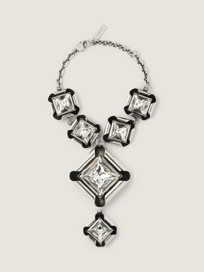 Armband i oxiderat metall med silverfinish och diamantformade och fyrkantiga kristaller i olika storlekar, för en dekonstruerad look.Dekonstruerade kristaller-serien.Justeringskedja med metallplatta graverad med Givenchy.Matchande örhängen och halsband säljs separat.FärgAntik silverMaterial100 % mässing. Sekundärt material: 100 % kristall.Vikt200 gUrsprungslandItalienProduktkodBf20Kzf005-723 Skötselråd: För att bevara kvaliteten på dina smycken rekommenderar vi att du hanterar dem varsamt och rengör dem regelbundet med en mjuk trasa. När du inte använder smycket rekommenderar vi att du förvarar det i sin originalförpackning från Givenchy, separat från andra smycken. Vi rekommenderar också att du undviker kontakt med kemikalier såsom hårspray, parfym, krämer, hushållsrengöringsmedel etc. Dessa kan orsaka för tidigt slitage på metallen, pärlorna och vissa ädelstenar. Fuktiga eller salta miljöer kan också ha irreversibla effekter, så vi rekommenderar att du tar av dig dina smycken när du simmar eller utövar fysisk aktivitet. Besök gärna vår särskilda sida eller kontakta våra Givenchy-team direkt om du vill ha mer information.