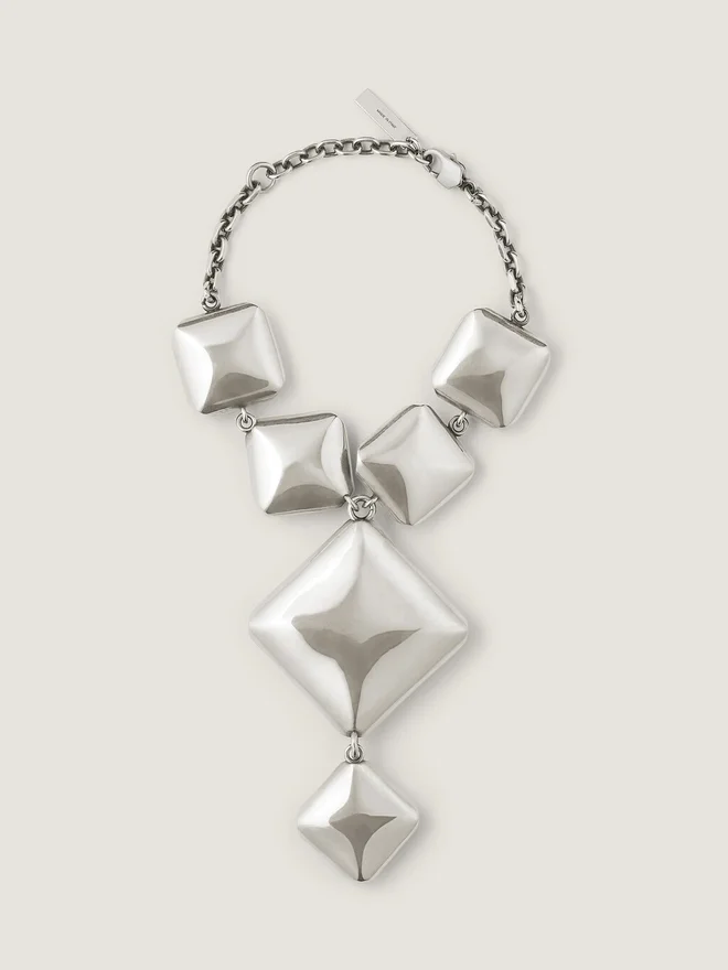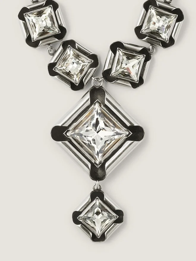 Armband i silverfärgad oxiderad metall med diamantformade och fyrkantiga kristaller i olika storlekar, för en dekonstruerad look.