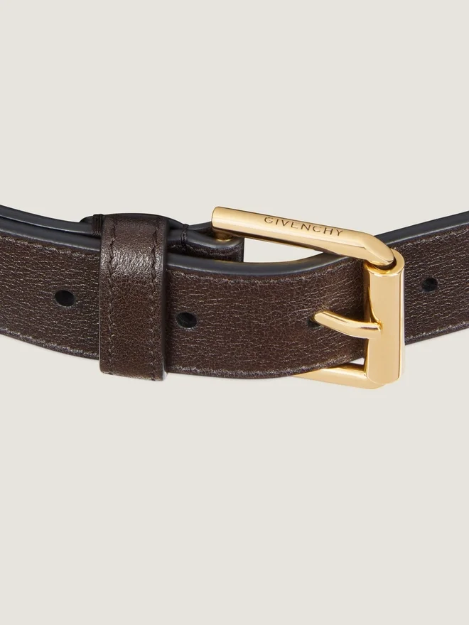 Långt bälte i glansigt kalvskinn.Voyou-serien.Ändknopp med Givenchy-gravering.Metalldetaljer med guldfinish.D FärgD ChokladD MaterialD 100 % kalvskinnD MåttBredd: 1 cmUrsprungslandItalienProduktkodBb408Hb2Ae-206 Skötselråd: Välkommen att besöka vår särskilda sida eller kontakta vårt Givenchy-team direkt om du vill ha mer information.