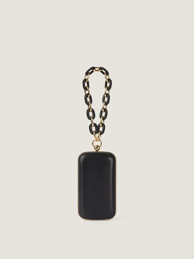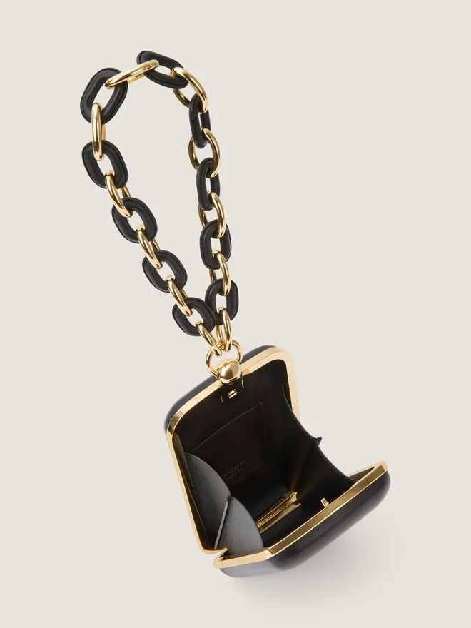 • Kvällsklutch i nappaläder.• Funktionellt metallgångjärn.• Maxi-kedjerem i metall och läder.• Givenchy Paris-signatur präglad på insidan.• Detaljer i metall med guldfinish.• Läderfickor på insidan. • Ett kortfack på insidan. • Foder i nappa. • Rymmer små nödvändigheter som en iPhone, ett kortfodral och en läppstift.FärgSvartStorlekMiniMaterial100 % lammskinnMått3,9 tum x 7,1 tum x 2 tumRemlängdMin: 28 cm UrsprungslandItalienProduktkodBb514Tb2Eb-001 Skötselråd Läder Läder är ett känsligt naturmaterial som bör användas och skötas med största omsorg. Varje läderprodukt är unik och utvecklar med tiden en patina som framhäver dess skönhet och karaktär. Varje märk är ett tidlöst minne att vårda. För att kunna njuta av och bevara glansen hos din Givenchy-produkt rekommenderar vi att du förvarar den i originalförpackningen på en torr plats när den inte används. Detta hjälper till att undvika exponering för fukt, värme och/eller ljuskällor som kan skada den. Det är också bäst att undvika kontakt med vatten, parfymer, kosmetika, fuktighetskrämer eller andra flytande produkter, eftersom dessa kan orsaka irreversibla skador på lädret. Canvas Vi rekommenderar att du rengör din Givenchy-produkt med en mjuk, ren trasa som är lätt fuktad och undviker kemiska produkter som kan skada tyget. Låt din Givenchy-produkt lufttorka och förvara den i sin originalförpackning på en torr plats, skyddad från fukt. Regelbunden skötsel är särskilt viktigt för ljusare nyanser, som är extra känsliga för smuts. Besök gärna vår särskilda sida eller kontakta våra Givenchy-team direkt om du vill ha mer information.