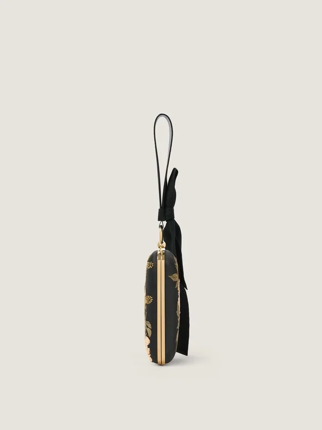 Aftonclutch med blomsterbroderier och rosett
