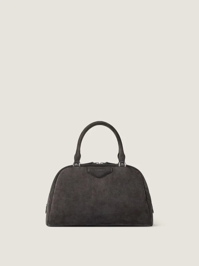 Medium väska i kalvskinn i mocka.Antigona-serien.Lång öst-väst-form med origami-inspirerad konstruktion.Stängning med dragkedja.Kan bäras i handen, över axeln eller som crossbody.• Ledade läderhandtag med fyra D-ringar för axelremmen. • Justerbar och avtagbar axelrem i läder. • Femkantig patch med präglad Givenchy-signatur på framsidan. • Givenchy Paris-patch på insidan. • Metalldetaljer med silverfinish.• Ett huvudfack med en platt ficka inuti. • Foder i bomull. Foder: 95 % bomull, 5 % akryl.Mått13 tum x 7,9 tum x 5,9 tumRemlängdMin: 20,5 tum • Max: 23,2 tum 9,3 tum x 4,4 tum x 4,3 tum Kortfack Ja Glasögonfodral Ja Fickparaply Ja iPhone 13 Ja Pocket Book – iPad Pro – MacBook Air –Vad får plats i din lilla Antigona Bag East-West-väska? Mått: 28 cm x 13,5 cm x 14,5 cm Kortfack Ja Glasögonfodral Ja Fickparaply Ja iPhone 13 Ja Pocket Book Ja iPad Pro – MacBook Air –Vad får plats i din Antigona East-West Bowling-väska? Mått: 33 cm x 20 cm x 15 cm
