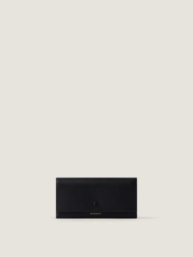 Lång plånbok i kornat läder.Day-serien.Tryckknappsstängning.Guldfärgad Givenchy-signatur på framsidan.Präglad Givenchy-signatur på baksidan.Guldfärgad Givenchy Paris-signatur på insidan.Läderklädd knapp på framsidan. Ett huvudfack med ett myntfack med dragkedja och sex kortfack. Kontrasterande insida.