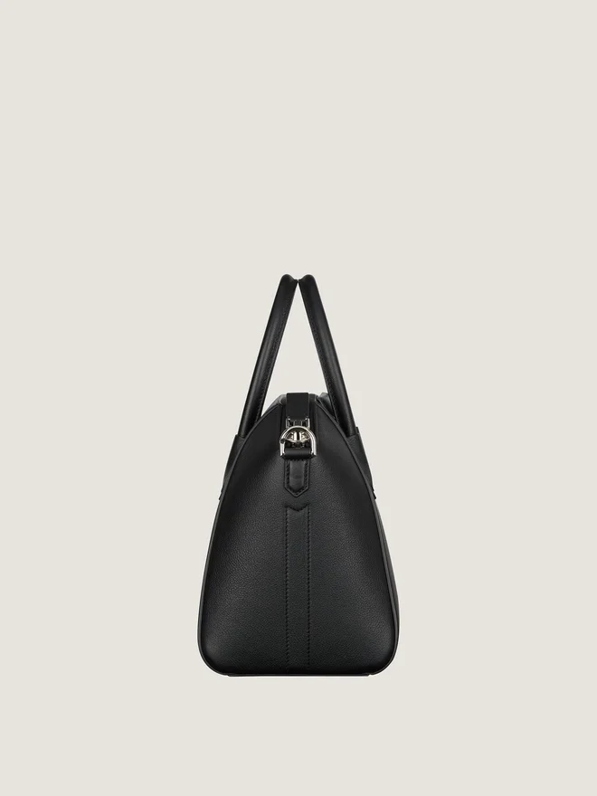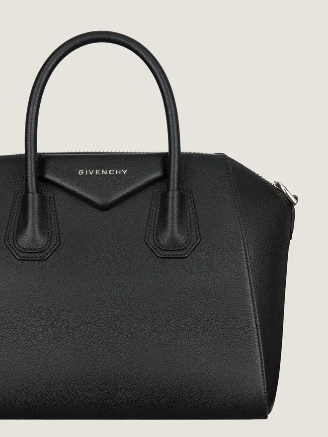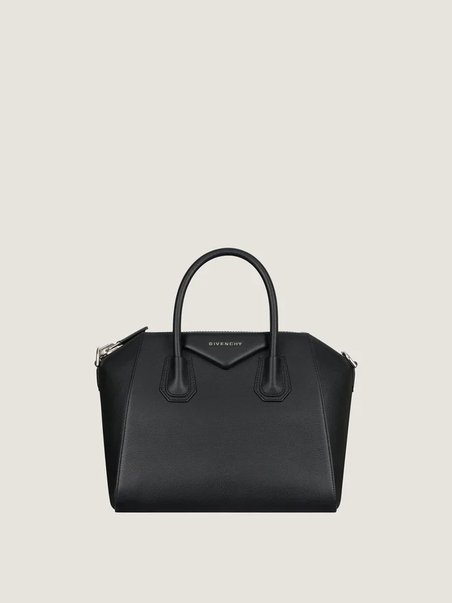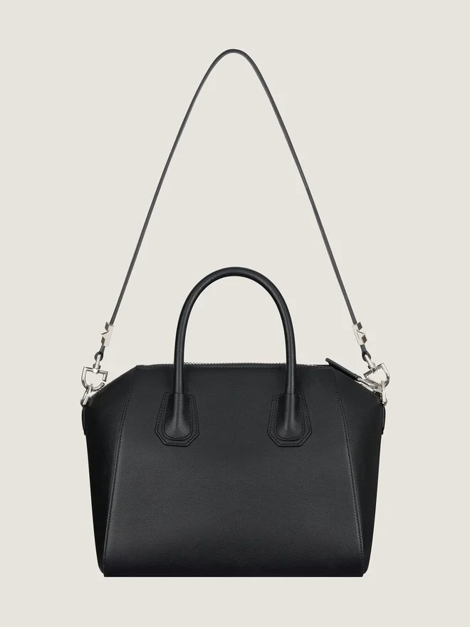 • Liten handväska eller axelväska i kornat getskinn.• Antigona-serien.• Dragkedja med Givenchy 4G-dragkedja.• Femkantig lapp med silverfärgad präglad Givenchy-signatur.• Läderhandtag.• Avtagbar rem i läder.• Metalldetaljer med silverfinish. • En innerficka med dragkedja. • Handtag: 3,9 tum. Färg Svart Material 100 % getskinn. Foder: 100 % bomull. Metaldelar: 100 % zamak.Mått: 28 cm x 25 cm x 15 cmRemlängd: Min: 13.8 In