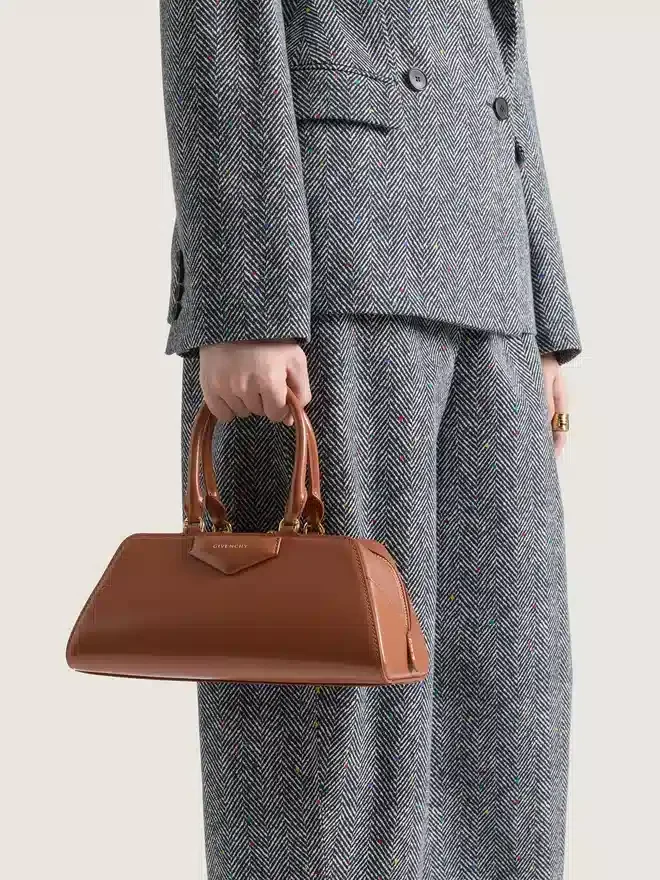 • Liten väska i boxkalvskinn och glansigt kornat läder.• Antigona-serien.• Lång öst-väst-form med vikning i origamistil.• Dragkedja.• Kan bäras i handen eller över axeln.Ledad läderhandtag med fyra D-ringar för axelremmen. Justerbar och avtagbar axelrem i läder. Femsidig patch med präglad Givenchy-signatur på framsidan. Givenchy Paris-patch på insidan. Metaldetaljer med guldfinish.Ett huvudfack med ett kortfack inuti.D FärgD KaramellbrunD MaterialD 100 % kalvskinn.D Andra materialD 100 % buffellskinn.D FoderD 90 % bomull, 10 % polyester.D MåttD 11 tum x 5,3 tum x 5,7 tumD Andra materialD 100 % buffellskinn.D FoderD 90 % bomull, 10 % polyester.D MåttD 11 tum x 5,3 tum x 5,7 tumD Andra materialD 100 % buffellsk Sekundärt material: 100 % buffelläder. Foder: 90 % bomull, 10 % polyester.Mått28 cm x 13,5 cm x 14,5 cmRemlängdMin: 20,5 tum • Max: 23,2 tum 9,3 tum x 4,4 tum x 4,3 tum Kortfack Ja Glasögonfodral Ja Fickparaply Ja iPhone 13 Ja Pocket Book – iPad Pro – MacBook Air –Vad får plats i din lilla Antigona Bag East-West-väska? Mått: 28 cm x 13,5 cm x 14,5 cm Kortfack Ja Glasögonfodral Ja Fickparaply Ja iPhone 13 Ja Pocket Book Ja iPad Pro – MacBook Air –Vad får plats i din Antigona East-West Bowling-väska? Mått: 33 cm x 20 cm x 15 cm