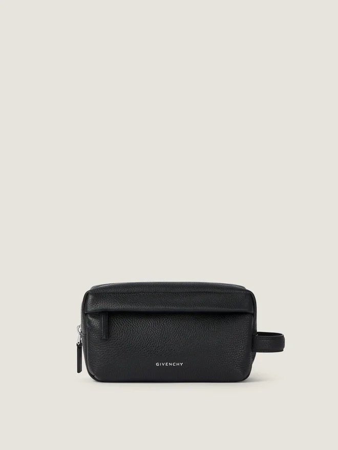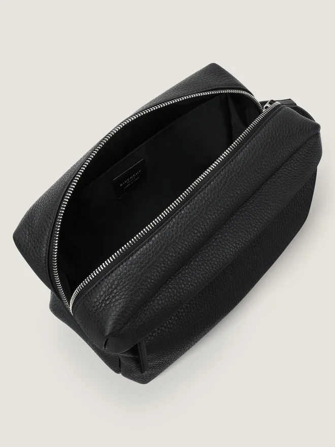 • Toalettväska i kornat kalvskinn.• U Backpack-serien.• Handtag på sidan.• Dragkedja med dragkedjetag i läder.• Givenchy-signatur präglad på framsidan.• Givenchy Paris-märke på insidan.• Metall detaljer med silverfinish.Ett huvudfack med en platt ficka inuti.En ficka med dragkedja på framsidan.FärgSvartMaterial100 % kalvskinn. Foder: 100 % polyamid.